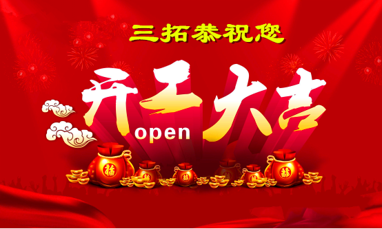 春节的喜庆气氛还没有消散,不过对于三拓全体员工来说,新的征程已经开始!我司已于今天2月4日正式上班,各位客户朋友如有业务咨询,可立即与我司相关同事联系。在这里三拓祝大家在新的一年中斗志昂扬,突飞猛进,好运常在,好事连连,前程似锦,大展宏图!祝已重返工作岗位的客户朋友们同事们开工大吉,新年更出彩!