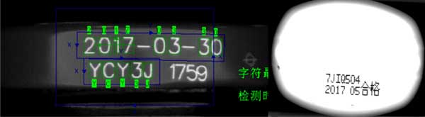 在产品包装打码后通过传送到经过视觉机器对标签三期位置进行拍摄,系统对三期喷码进行分析。
