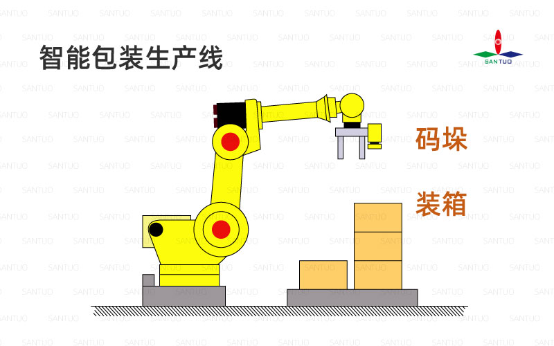 1.自动化:整条包装箱线可以全部实现自动化,特别是装箱采用机器人自动装箱,稳定性高,更换不同的产品时可灵活通过编程实现。自动化的好处是效率高、省人工、不容易出错,采用机器视觉检测,确保生产产品的质量,获得更好的竞争力。