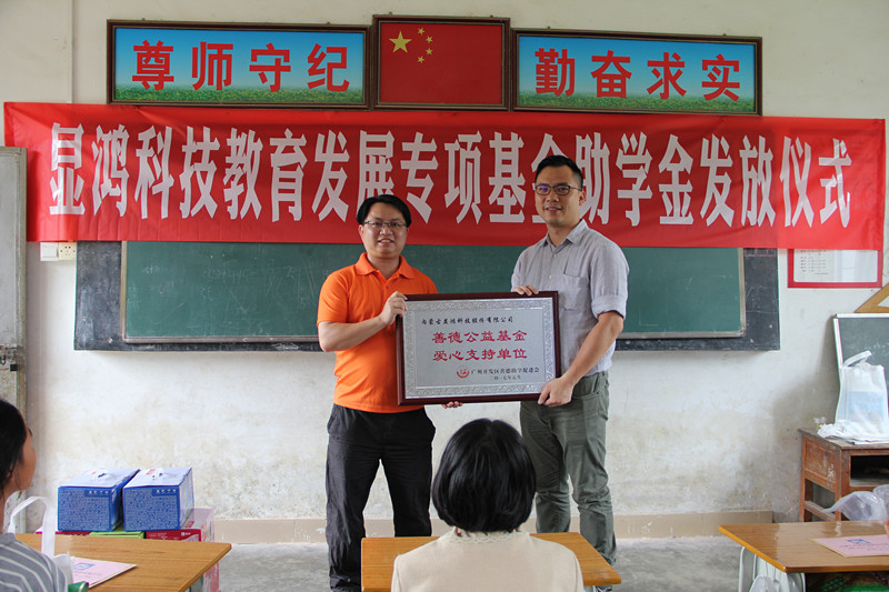 2017年5月20日,内蒙古显鸿科技股份有限公司(股票代码:836619)联合广州开发区善德助学促进会、河源市春风助学服务中心在河源市紫金县横排小学举行“显鸿科技教育发展专项基金”助学金发放仪式,这标志着显鸿科技以捐资助学为主的教育发展专项基金正式成立,未来显鸿科技将持续投入资金帮助贫困学生圆读书梦,成才回馈社会。