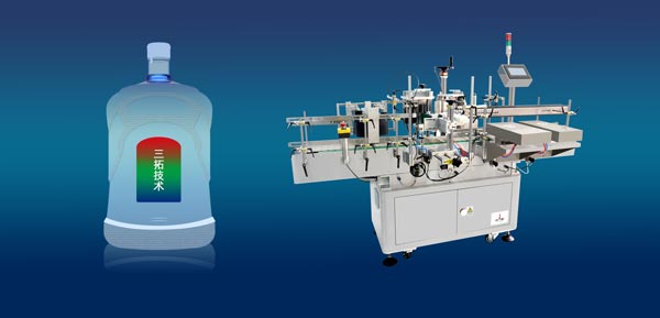 像桶装矿泉水这么大口径的圆筒传统的小口径如矿泉水贴标机、红酒瓶贴标机等小口径贴标机就不能适用了。这个时候我们需要用到属于桶装矿泉水专用的贴标机(如下图),它专门为大口径的矿泉水桶、油桶、漆桶设计,可实现对桶装矿泉水的全周或半周贴标,也可以定点定位多标贴贴标,这个主要依据客户的需求定制。